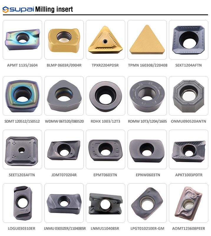 การใส่คาร์ไบด์มีหลายรูปทรงและขนาด แต่ละตัวมีขอบตัดและกณิตศาสตร์ที่แตกต่างกันเครื่องบดหรือเครื่อง CNC